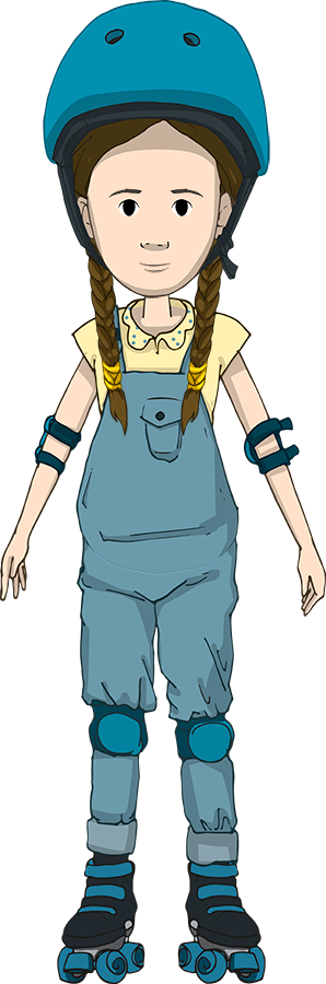 Timy la hermana del medio, es alegre, extrovertida, curiosa y valiente. Avanza por la vida, a toda velocidad, subida en sus patines, siempre con su mapa en la mano.