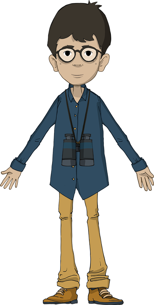 Tim es el peque de la casa, sigue a sus hermanos a sol y sombra. Siempre cargado con su bolsa de canicas, ha aprendido a llevar su cantimplora y su brújula para sobrevivir en las aventuras.